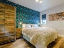The bedroom has a super kingsize bed and an en-suite shower room.
